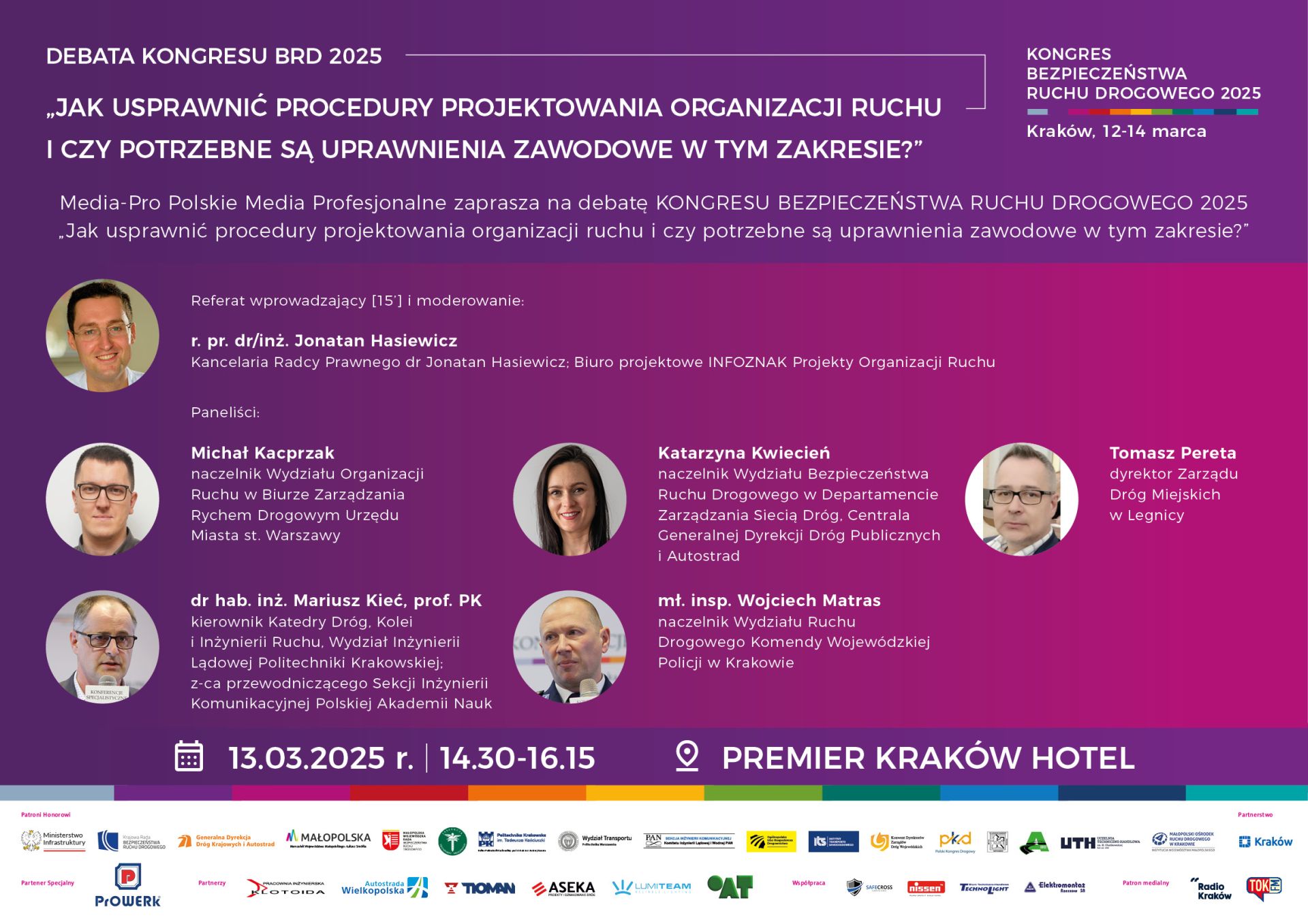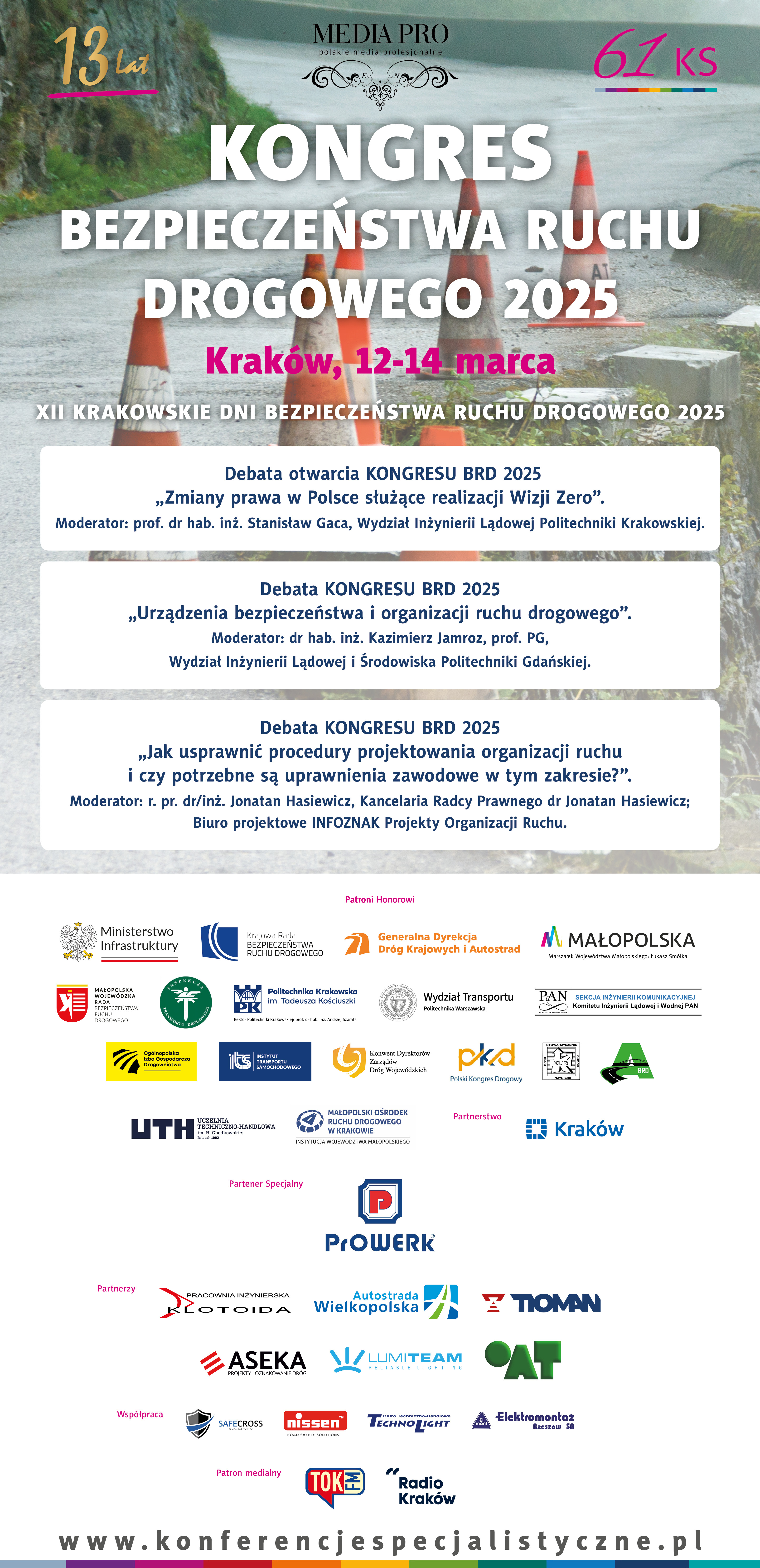 Z wielką radością zapraszam Państwa do udziału w KONGRESIE BEZPIECZEŃSTWA RUCHU DROGOWEGO 2025 organizowanym z okazji XII KRAKOWSKICH DNI BEZPIECZEŃSTWA RUCHU DROGOWEGO pod Patronatem Honorowym Ministerstwa Infrastruktury i w ścisłej współpracy merytorycznej z najważniejszymi uczelniami technicznymi, instytucjami i stowarzyszeniami branżowymi.