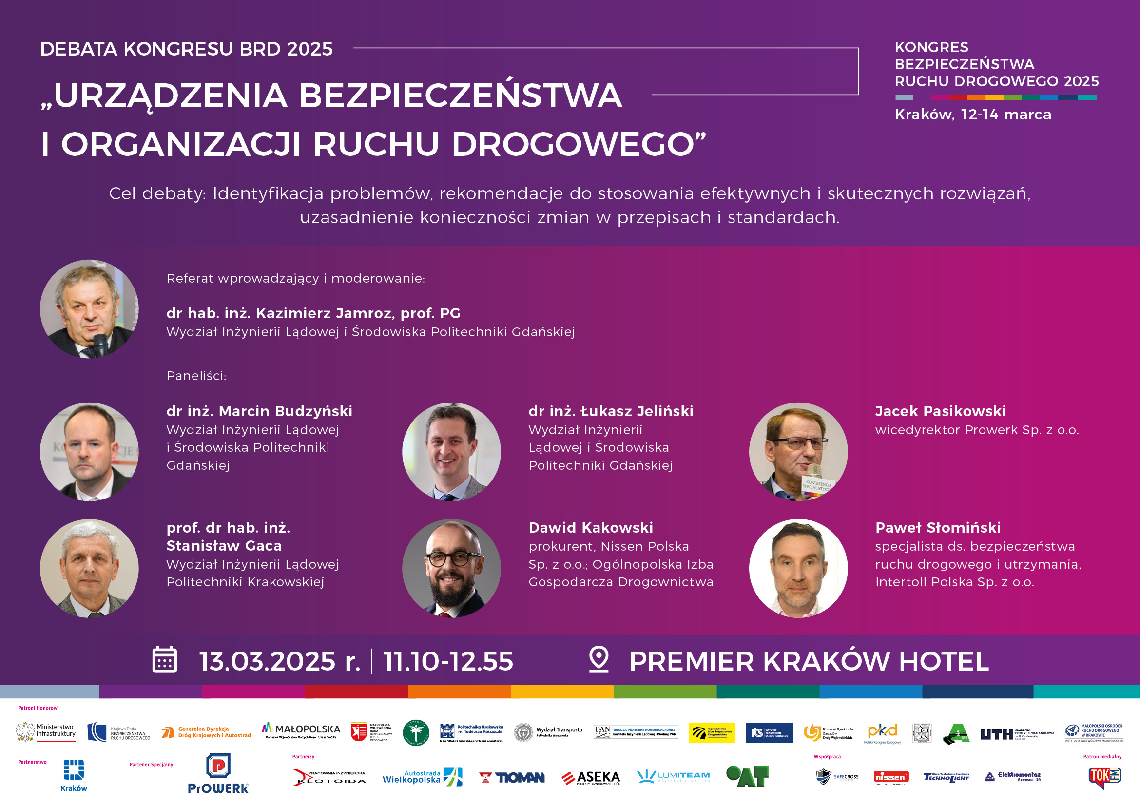 prof. dr hab. inż. Stanisław Gaca, Wydział Inżynierii Lądowej Politechniki Krakowskiej; przewodniczący Rad Programowych KONGRESÓW BEZPIECZEŃSTWA RUCHU DROGOWEGO 2023-2025; przewodniczący Rad Programowych I-XII KRAKOWSKICH DNI BRD 2014-2025 oraz Forum BARIERY 2013
