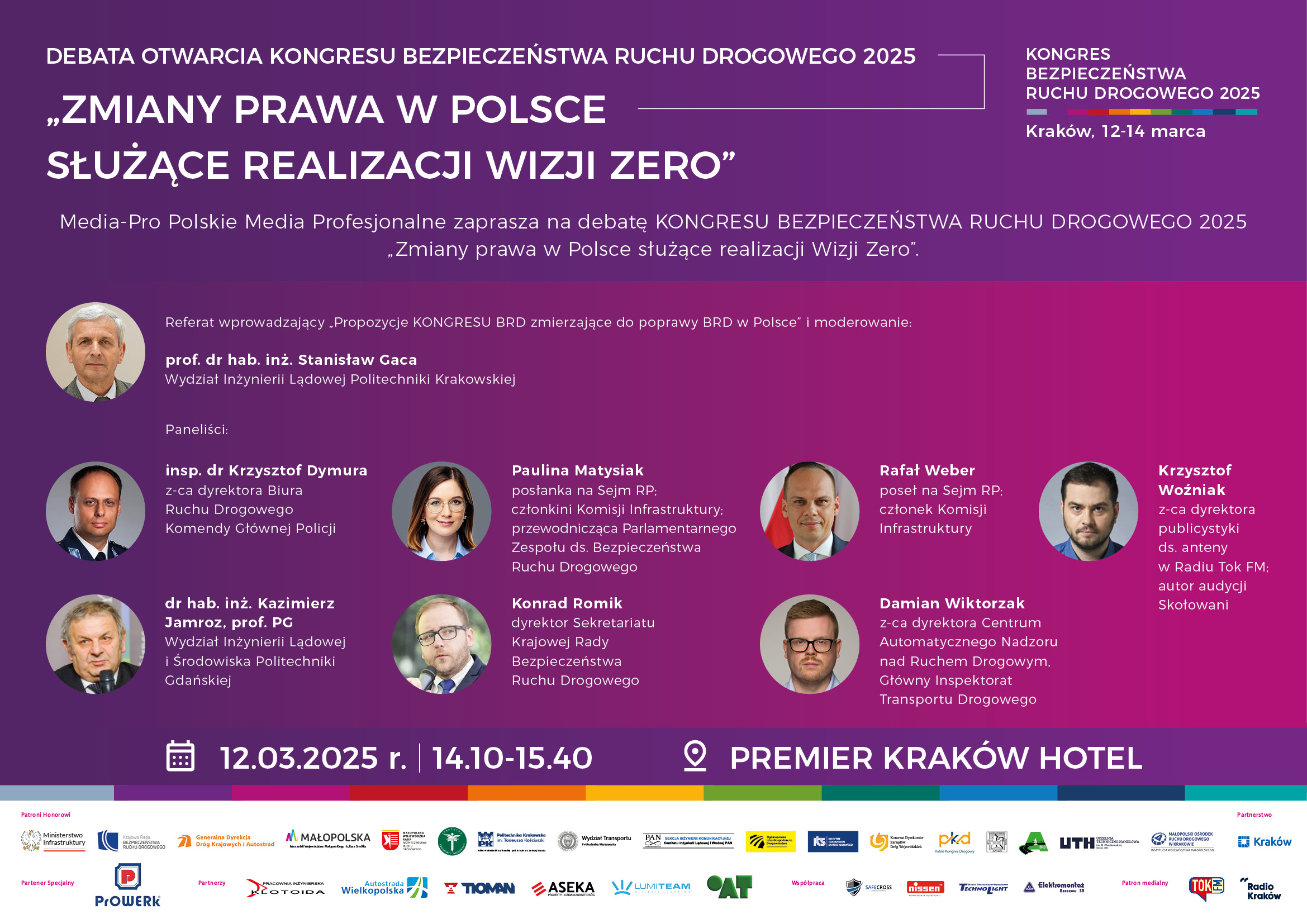 serdecznie zapraszam do udziału w KONGRESIE BEZPIECZEŃSTWA RUCHU DROGOWEGO 2025, organizowanym z okazji XII KRAKOWSKICH DNI BEZPIECZEŃSTWA RUCHU DROGOWEGO, który odbędzie się w dniach od 12 do 14 marca 2025 roku.